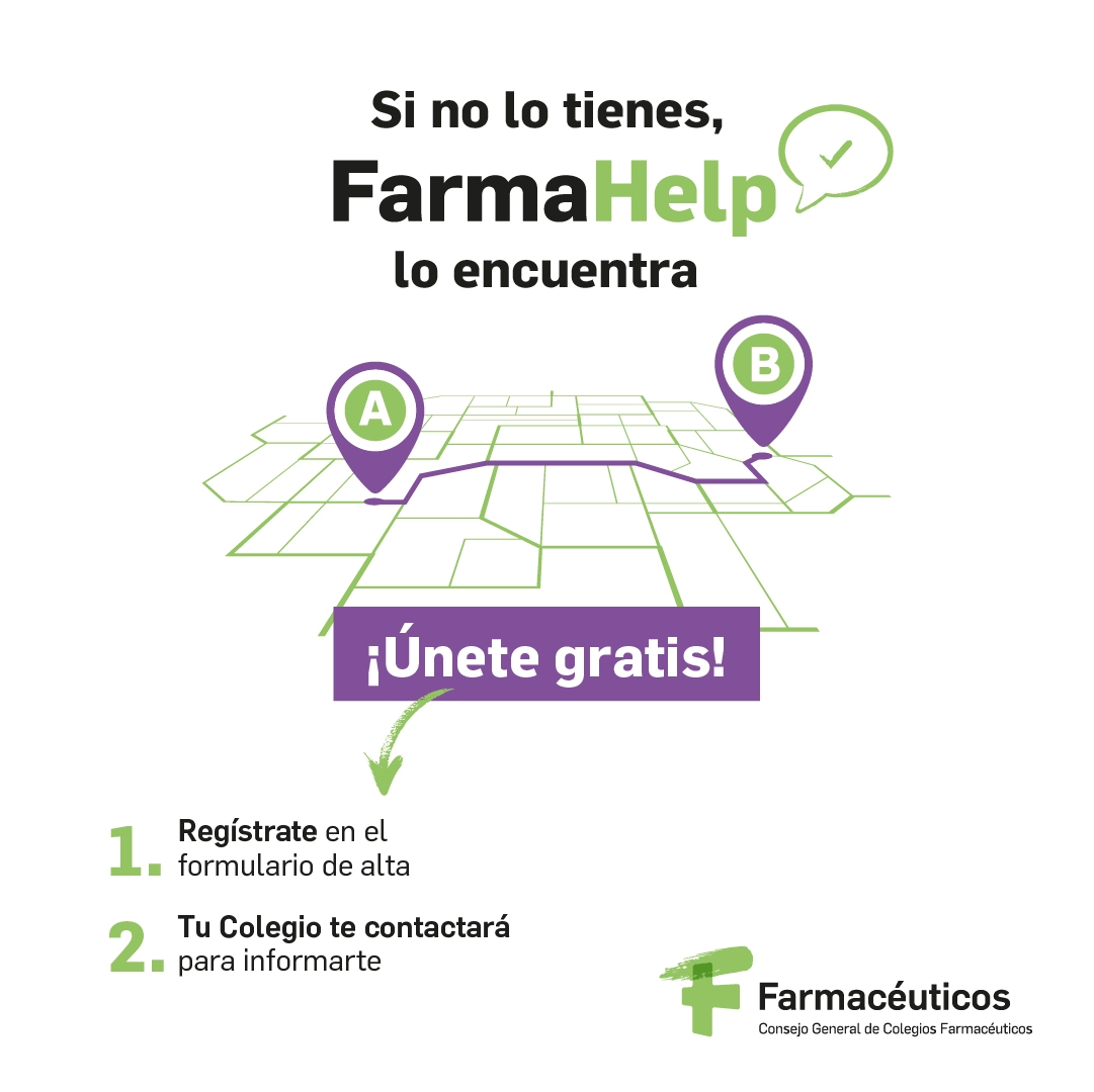 FarmaHelp es una herramienta digital y gratuita de la Organización Farmacéutica Colegial que permite al farmacéutico comunitario contactar con las farmacias de su entorno cuando un paciente necesite algún medicamento y no disponga del mismo. Su principal objetivo es conectar a la red de Farmacias Comunitarias para ayudar a farmacéutico y paciente a encontrar y luchar contra la falta de medicamentos.